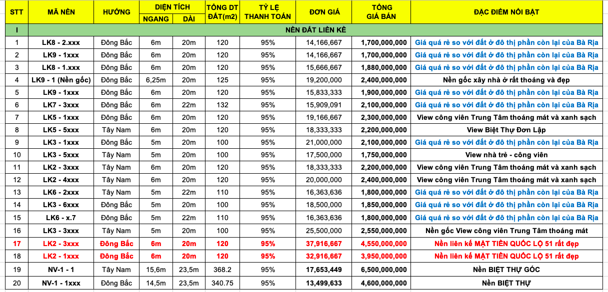 - Loại hình: Đất nền xây Nhà Phố và Biệt Thự.