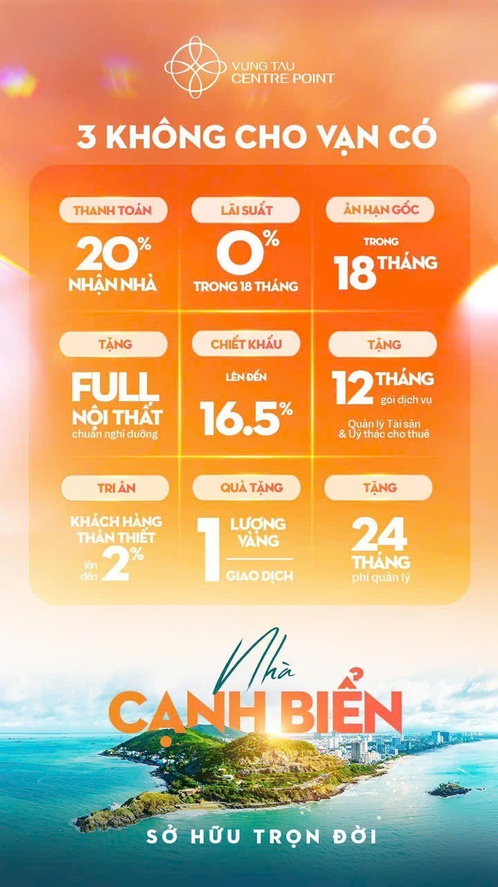 ✔️ Vị trí: Tọa lạc trên hai mặt tiền huyết mạch đắt địa bậc nhất Vũng Tàu, cách biển Chí Linh 700m, Vung Tau Centre Point ôm trọn tầm nhìn hướng biển và Hồ Phượng Hoàng, tâm điểm kết nối đến các tiện ích giáo dục, y tế, mua sắm, giải trí và thương mại.