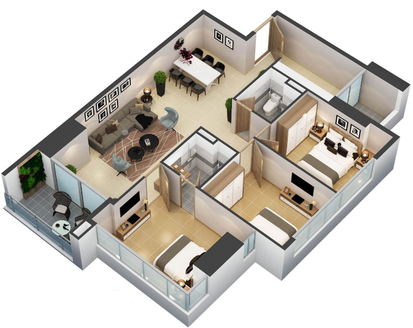 • Căn 3 phòng ngủ: 80,32 m2 ; 113,71 m2
