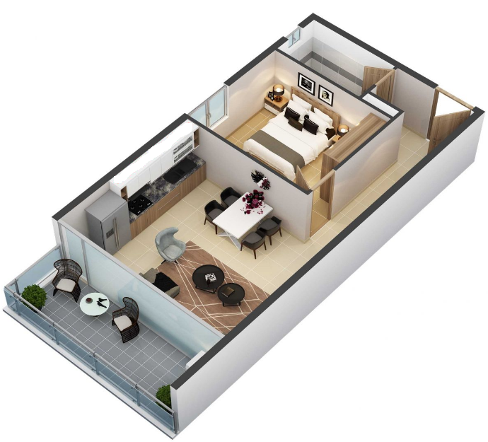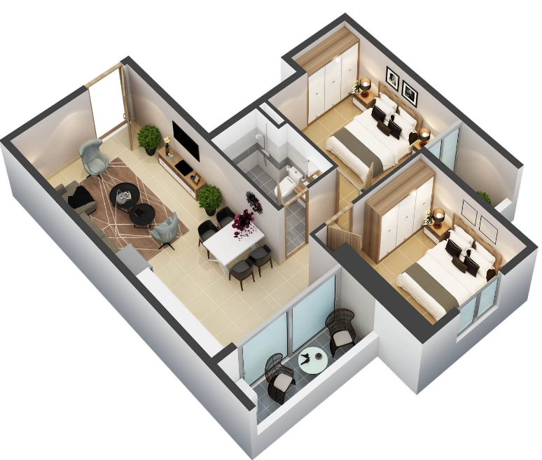 • Căn 2 phòng ngủ: 68m2- 70m2